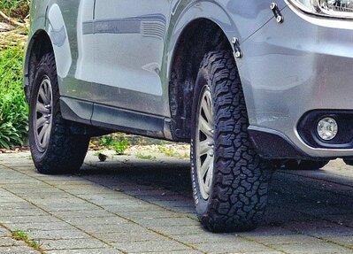 Warum dann nicht gleich etwas grösser? Ganz einfach: Erstens finde ich es besser im Radkasten etwas mehr Platz zu haben und stelle mit dieser Dimension noch sicher, dass die Reifen im Volleinschlag ohne Erweiterung des Radkastens nirgends schleifen. Zum zweiten geht bei meinem bescheidenen 150 PS-Motor dann jede grössere Dimension zu Lasten der Kraft im Gelände.