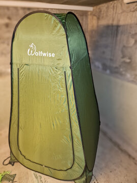 Ein leichtes, pop-up Duschzelt. Ist blickdicht, schützt vor Regen und Wind, ist extrem leicht, flach und lässt sich sehr gut irgendwo im Auto, oder sogar im Dachzelt verstauen... und ist in 30 Sekunden aufgestellt! Die Masse sind üppig: (H x B x T) 190 x 120 x 120 cm
